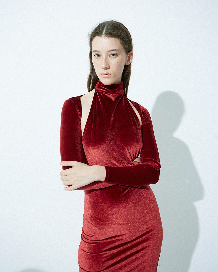 Elastic velvet shrug matching dress. Fitted.