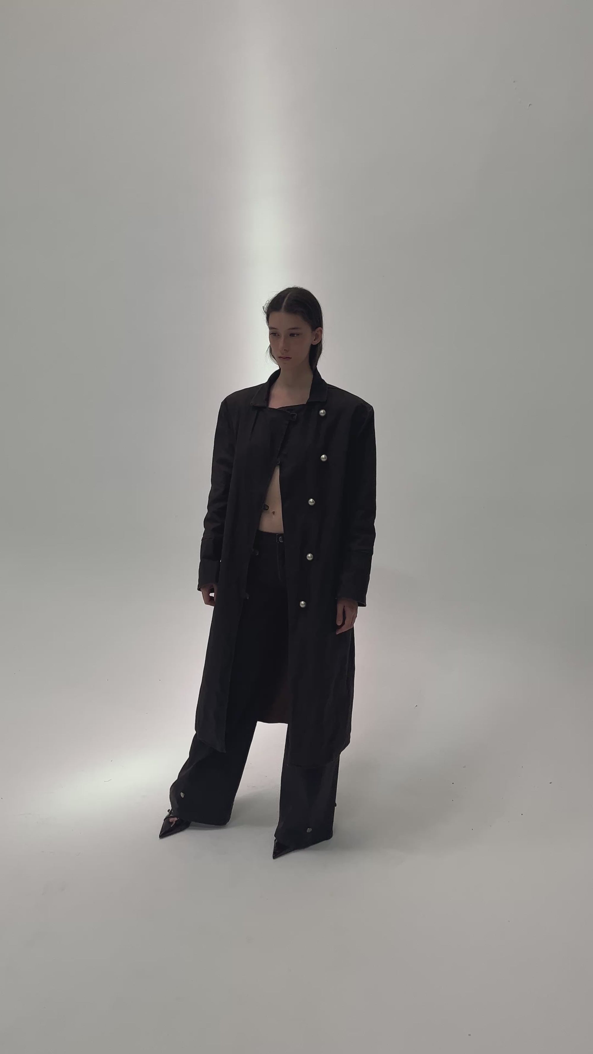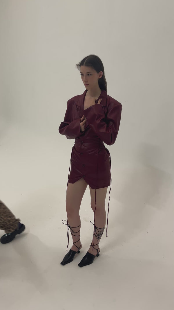 Blazer-dress with cord details on sides and shoulderpads. Fitted.
